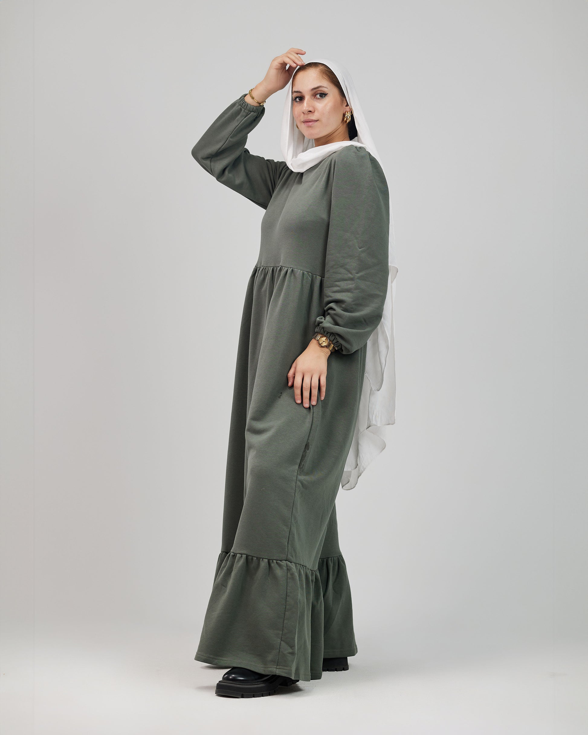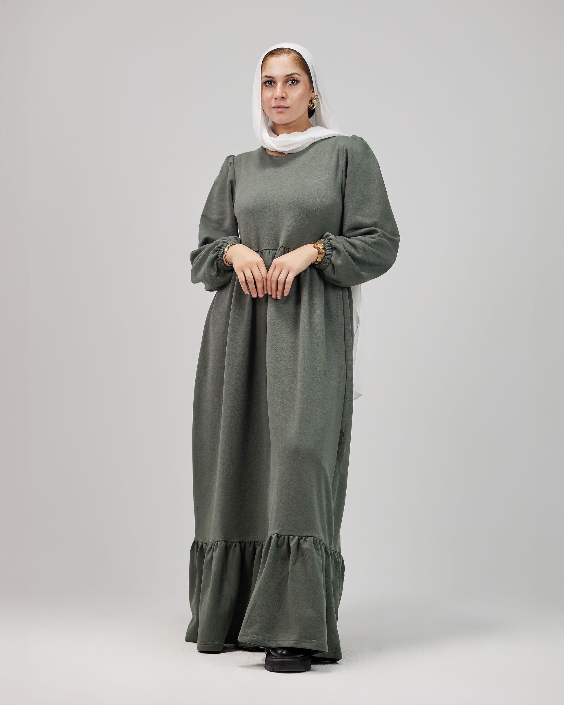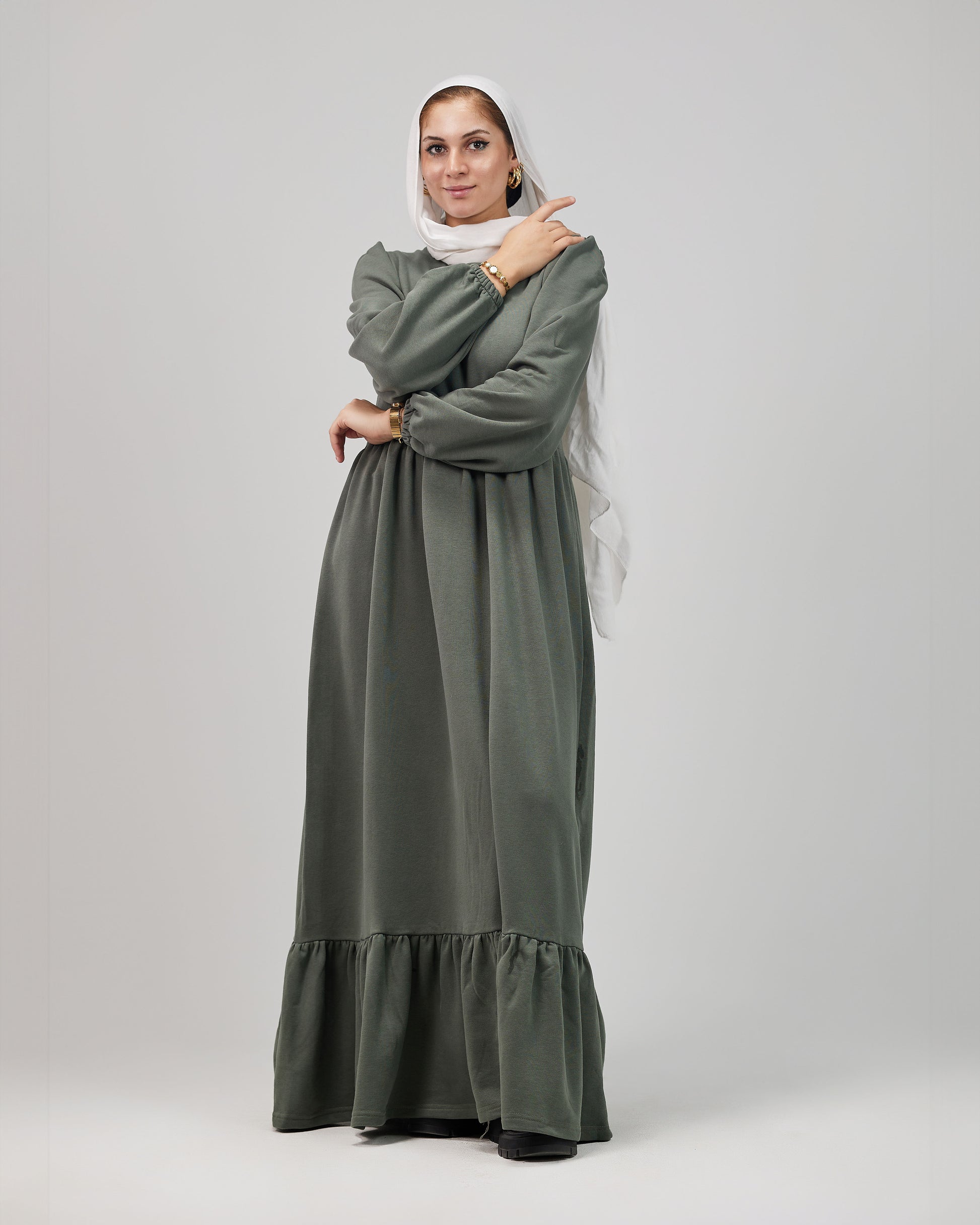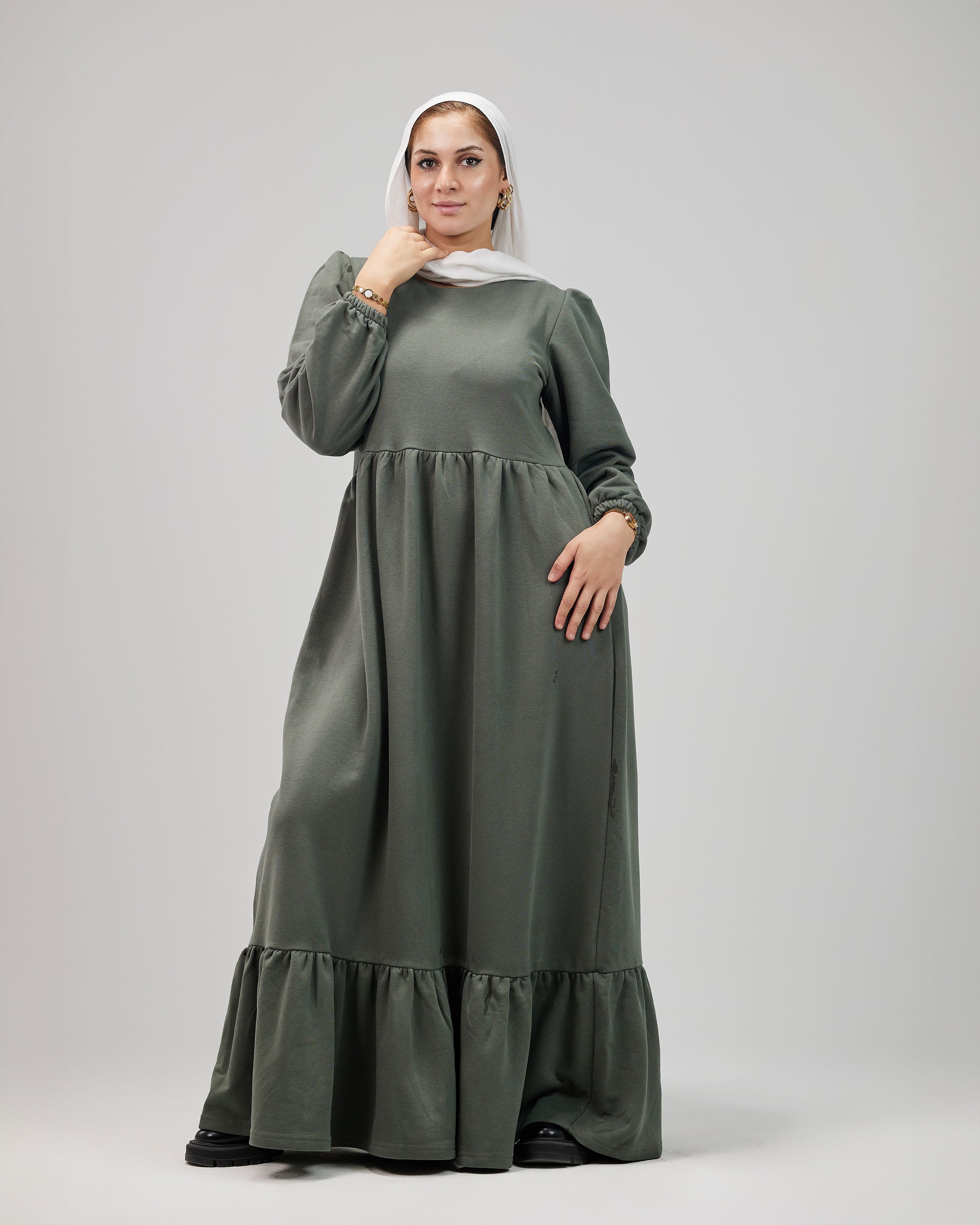 وفرنالك فستان بسيط وشيك في نفس الوقت، بخامة مناسبة للأجواء الشتوية ❄️❄️