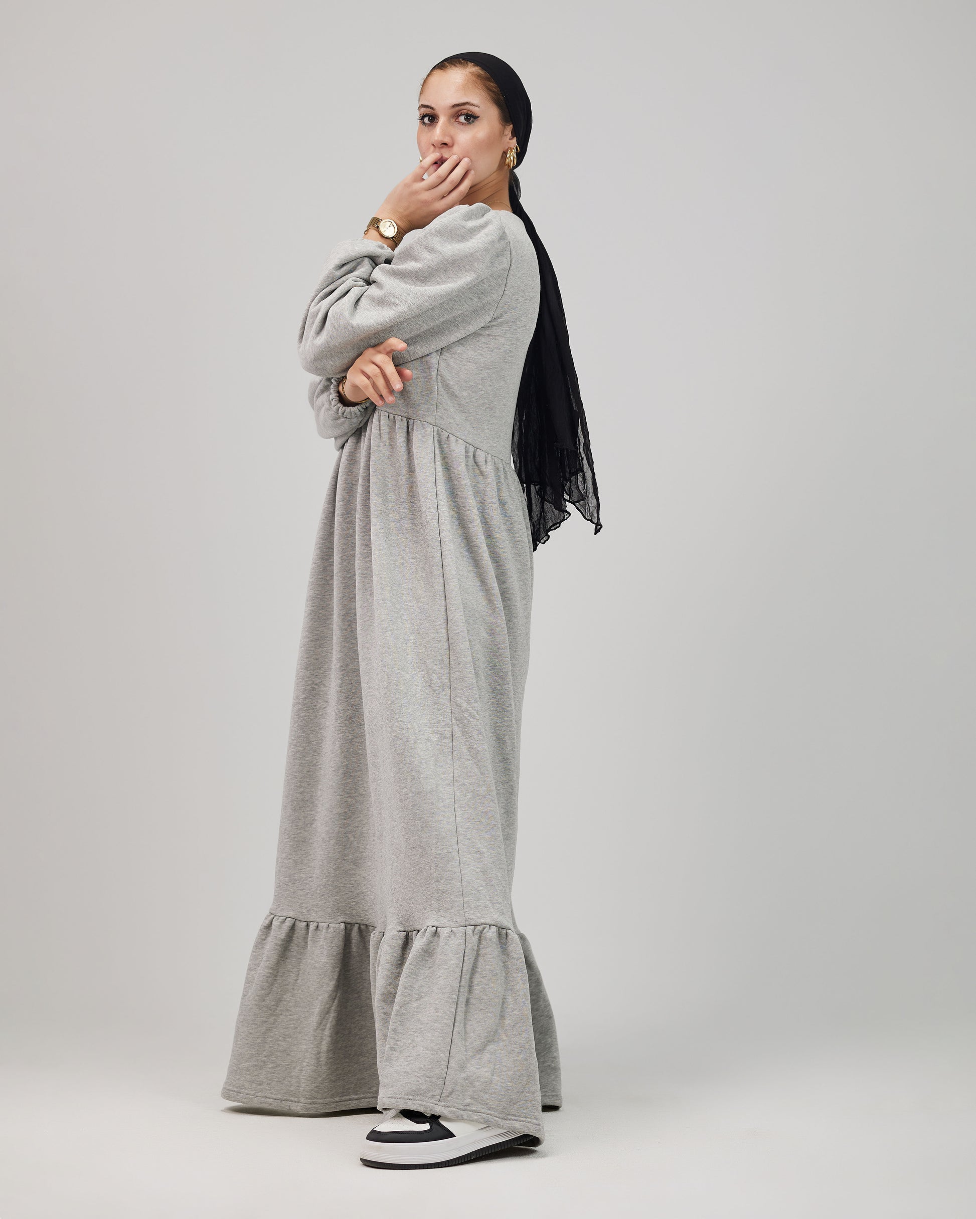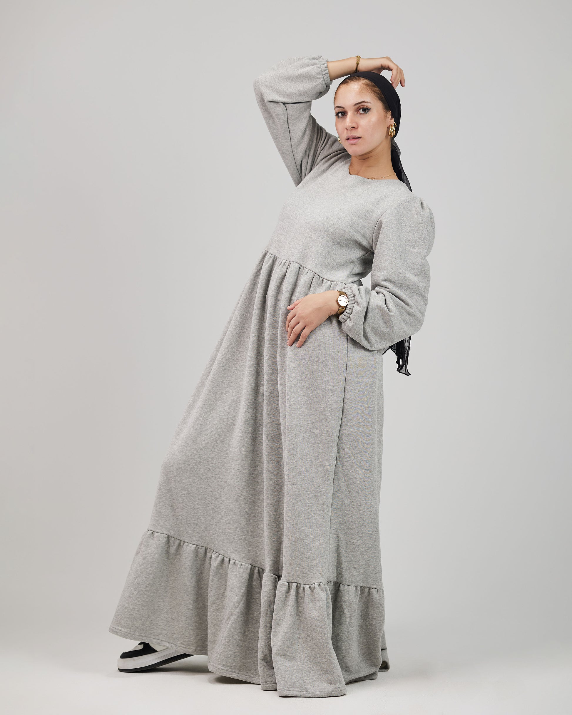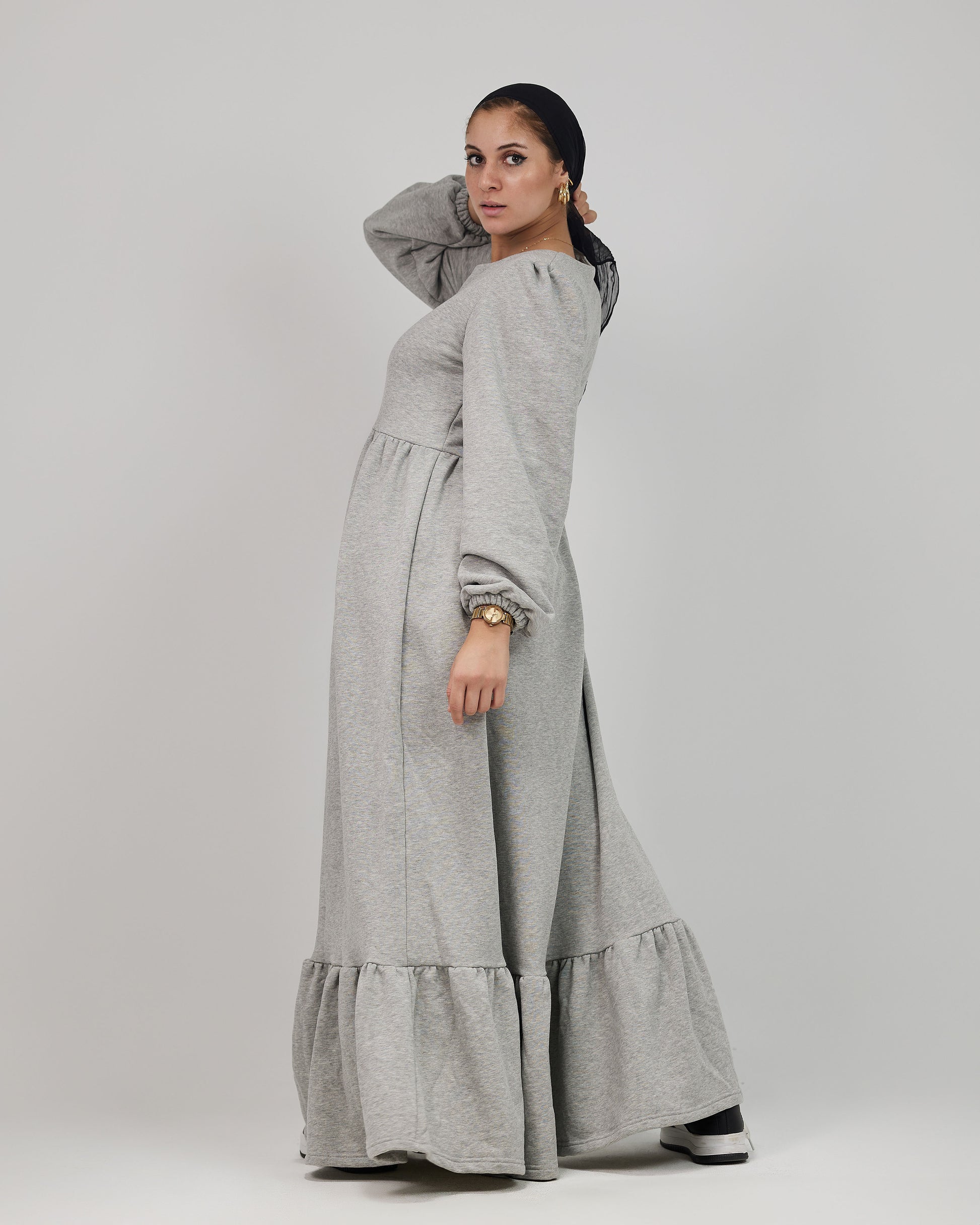 وفرنالك فستان بسيط وشيك في نفس الوقت، بخامة مناسبة للأجواء الشتوية ❄️❄️