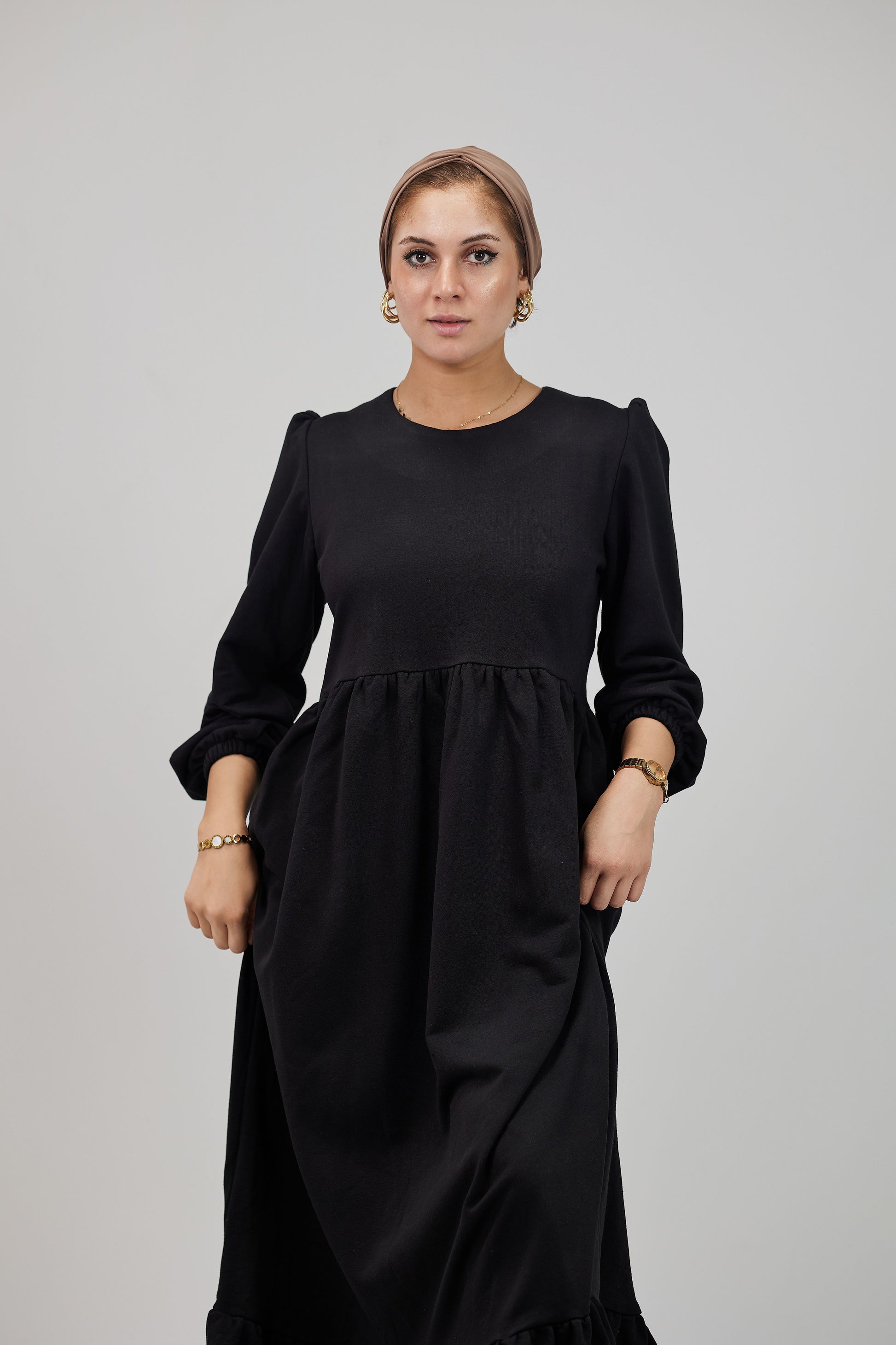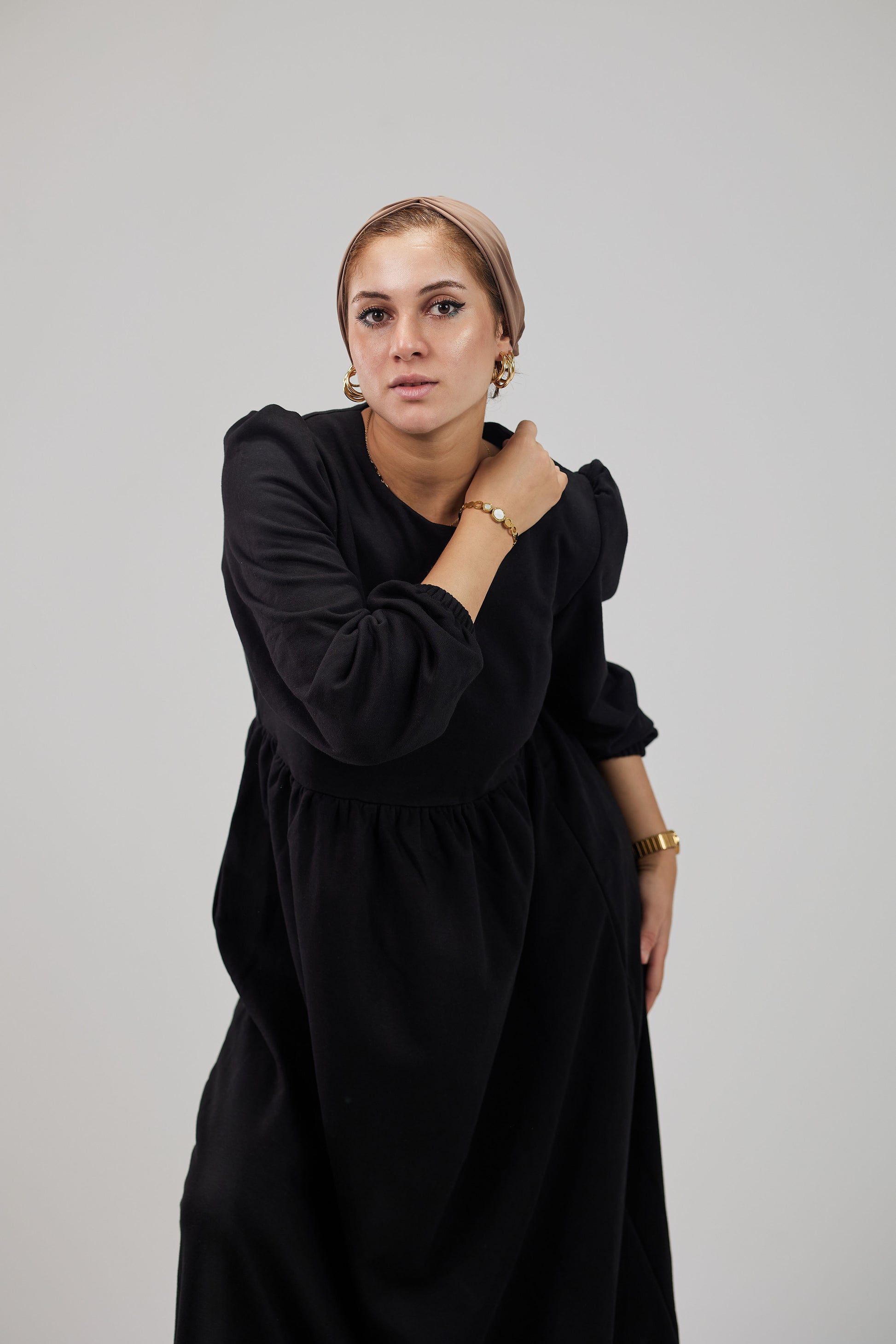 وفرنالك فستان بسيط وشيك في نفس الوقت، بخامة مناسبة للأجواء الشتوية ❄️❄️