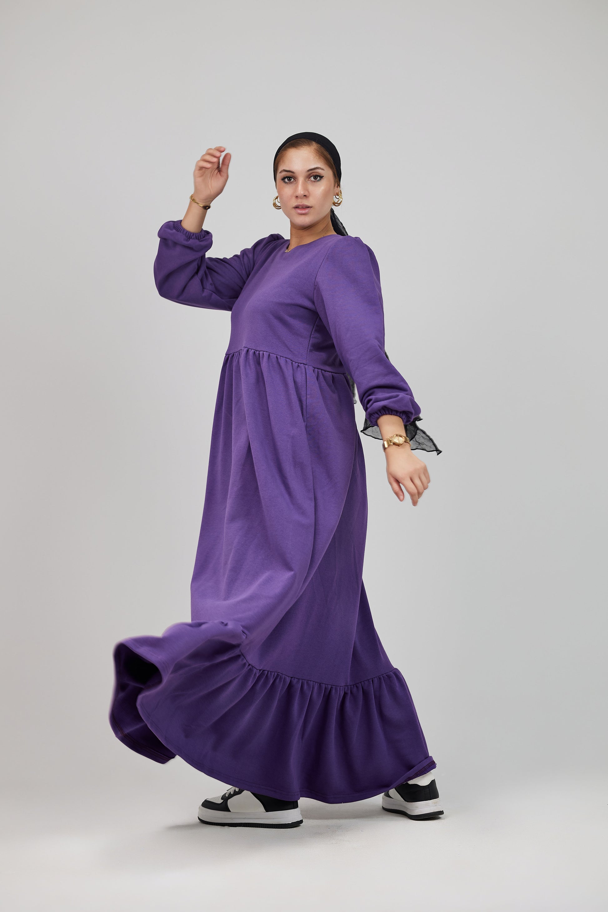 وفرنالك فستان بسيط وشيك في نفس الوقت، بخامة مناسبة للأجواء الشتوية ❄️❄️