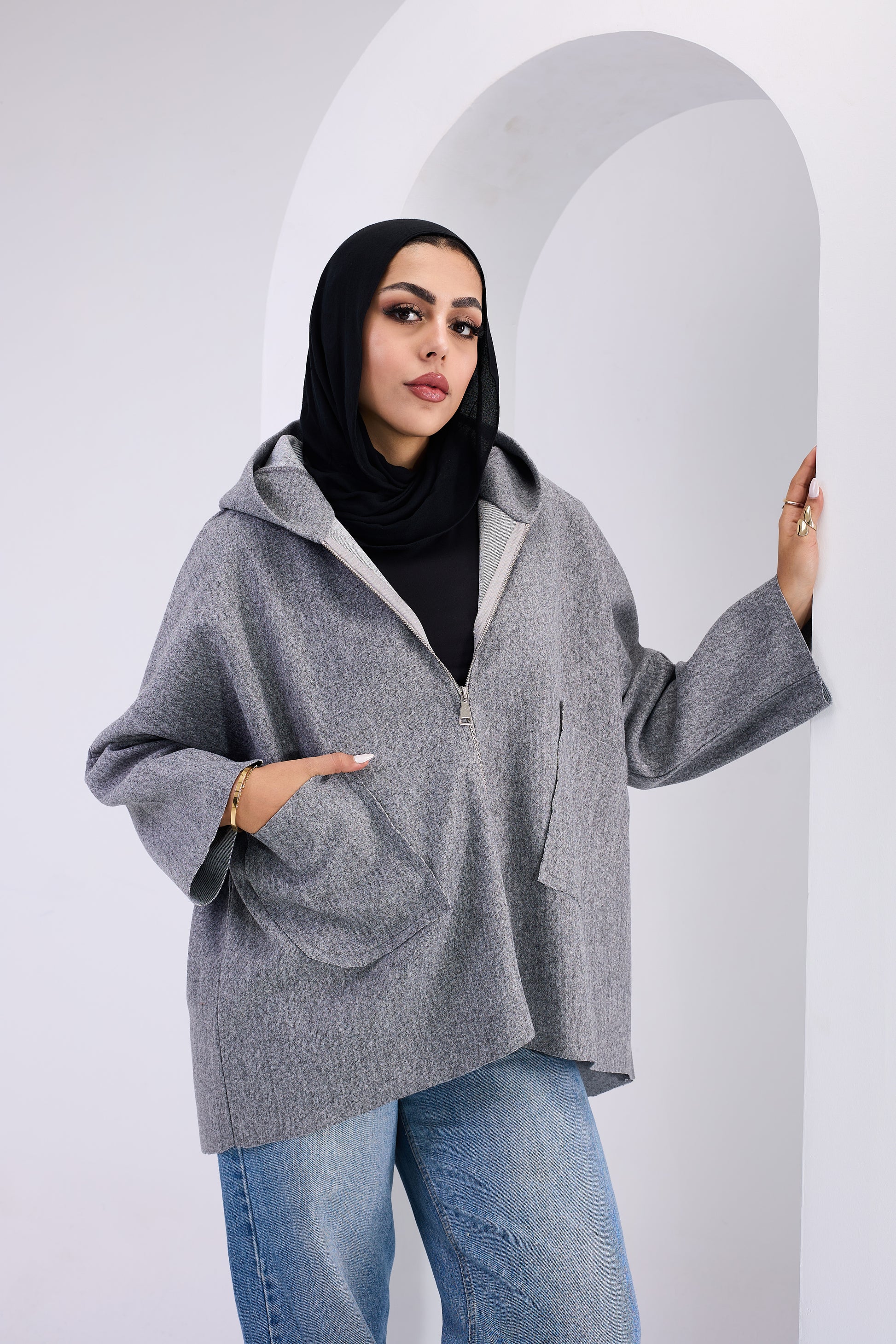سويت شيرت مصنوع من خامة الـ جوخ تقدري تلبسيه مفتوح او مقفول